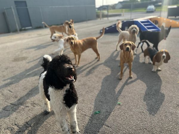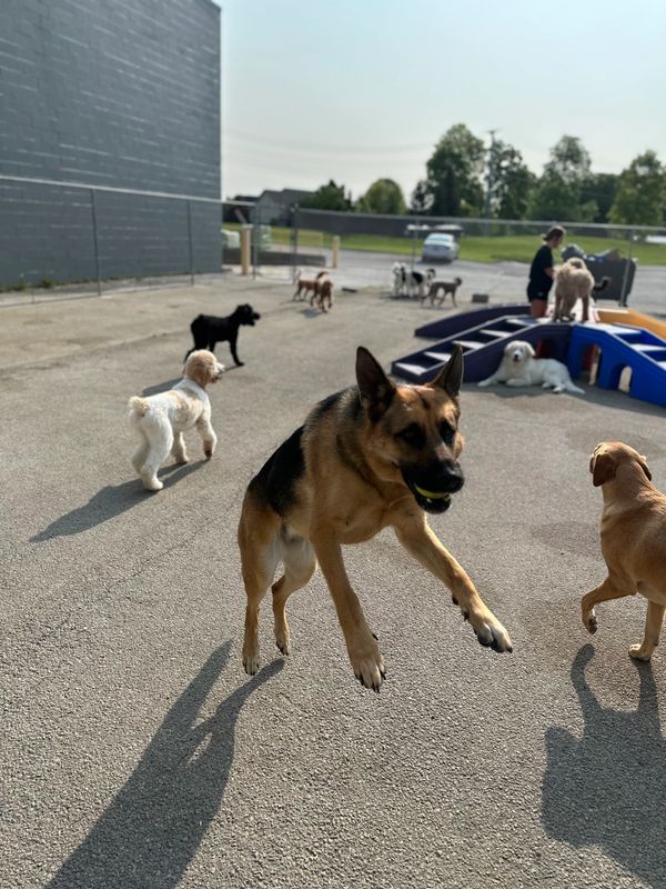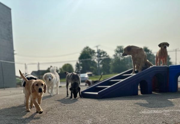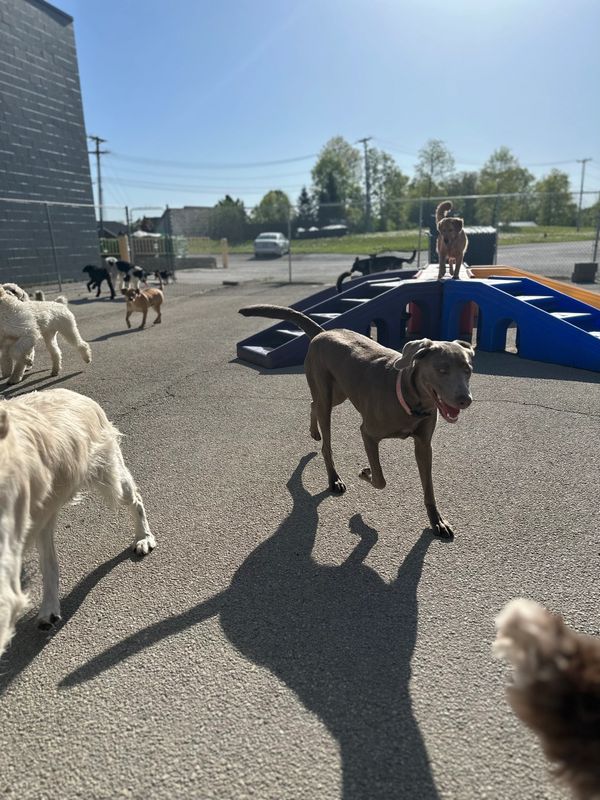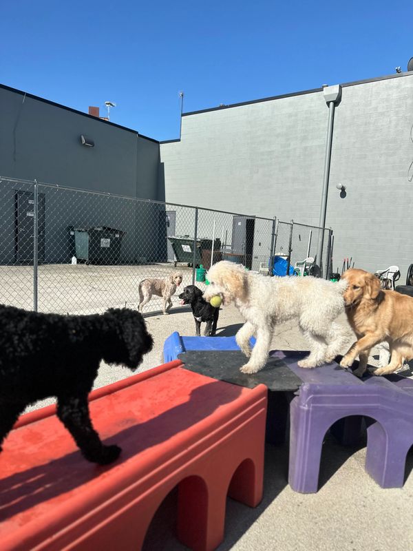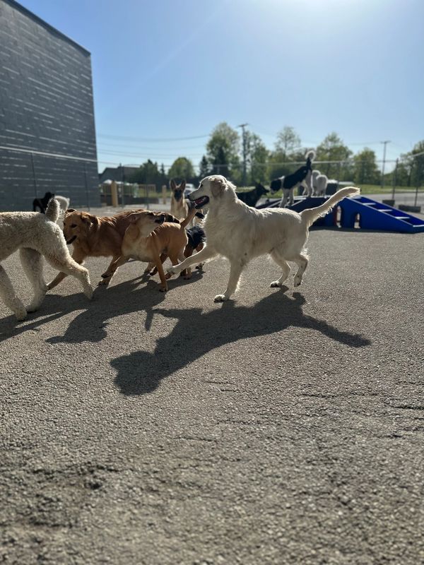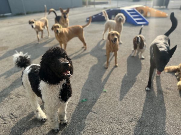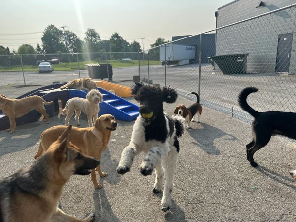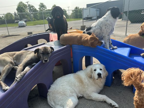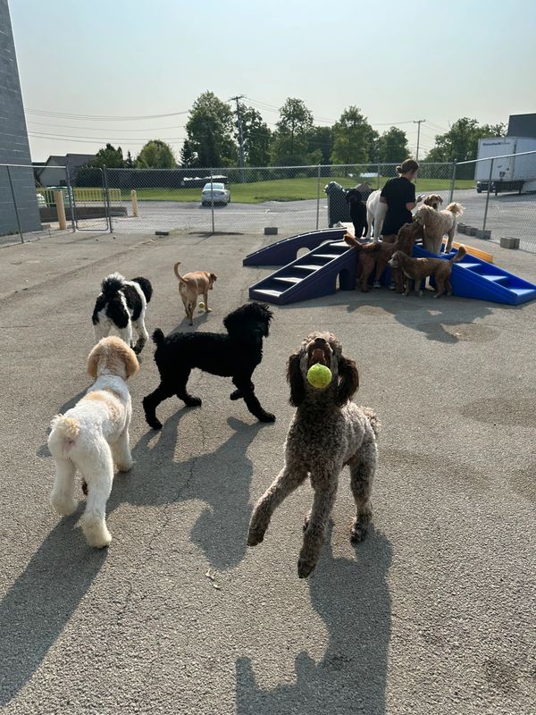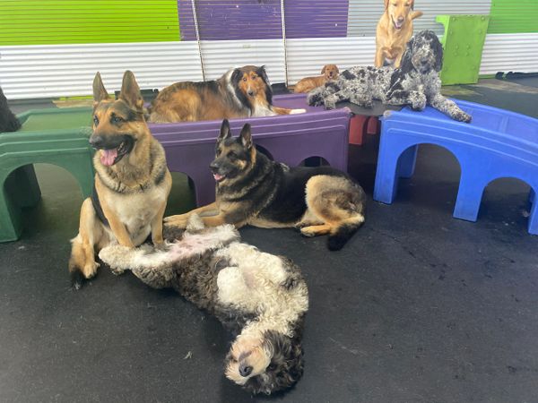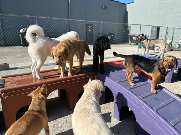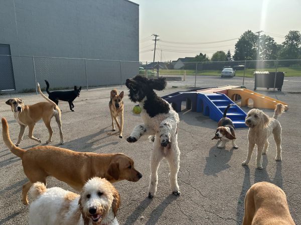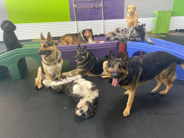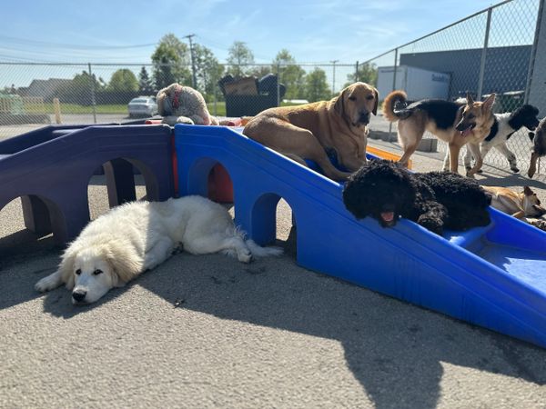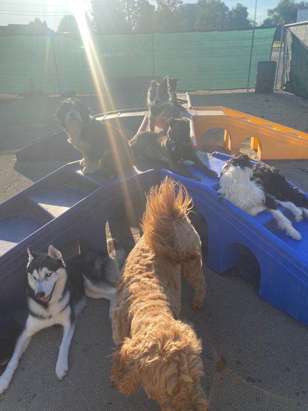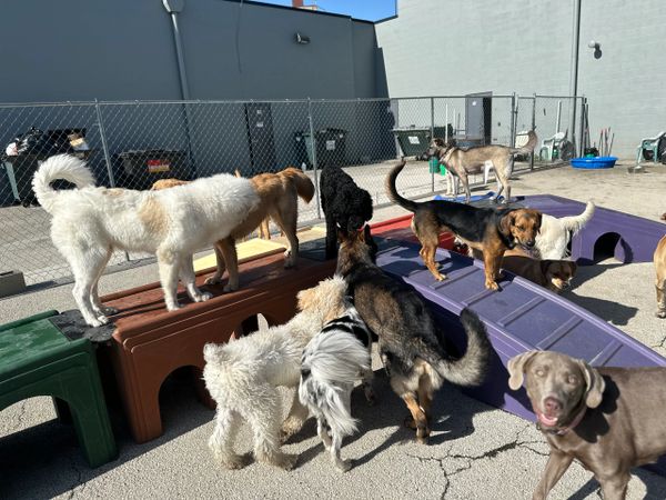 K9to5 Doggy Daycare is a unique, upscale doggy daycare facility, that provides each canine client with exceptional care in a loving, safe, and clean environment. We have multiple play areas for dogs of different sizes, ages, and play styles to enjoy safe and supervised socialization and exercise. Each play area is complete with toys, play equipment, cots for relaxation, and fresh water around the clock. Your dog will spend their day playing with their best furriends and receiving constant love and attention from our trained staff. By the end of the day they will be happy and totally tuckered out!