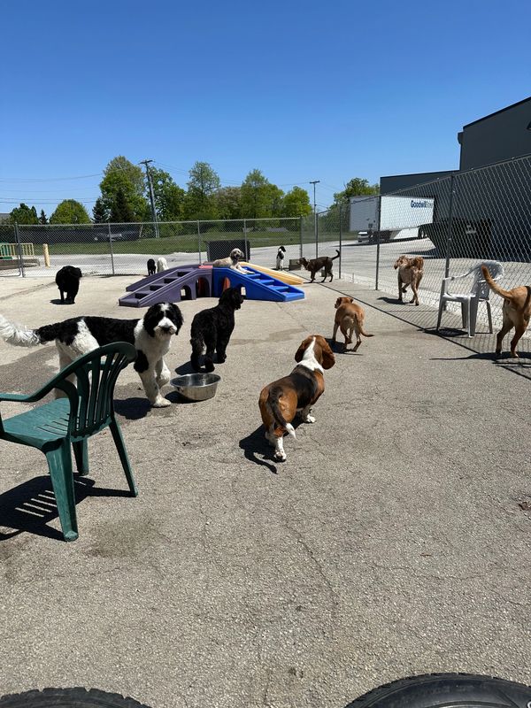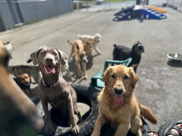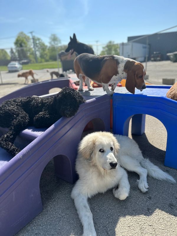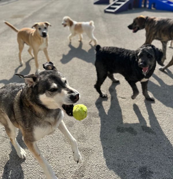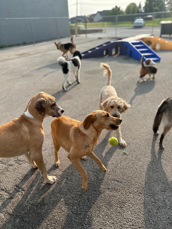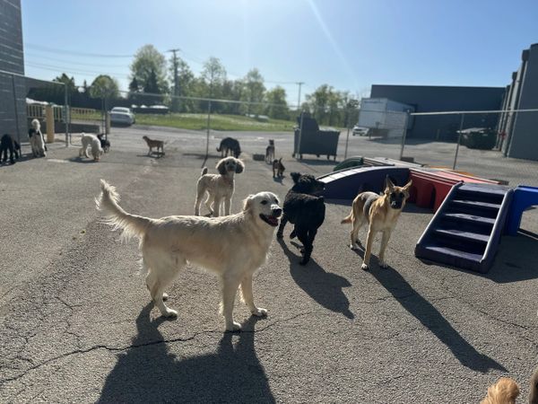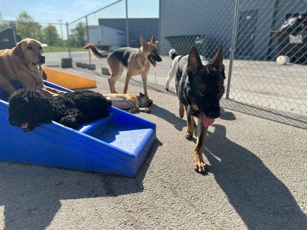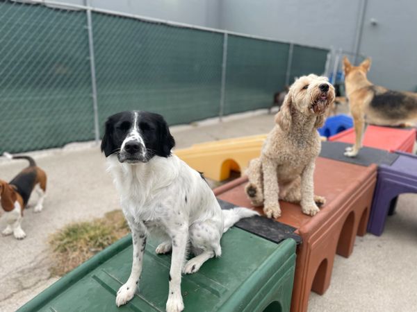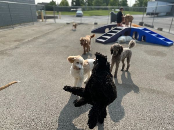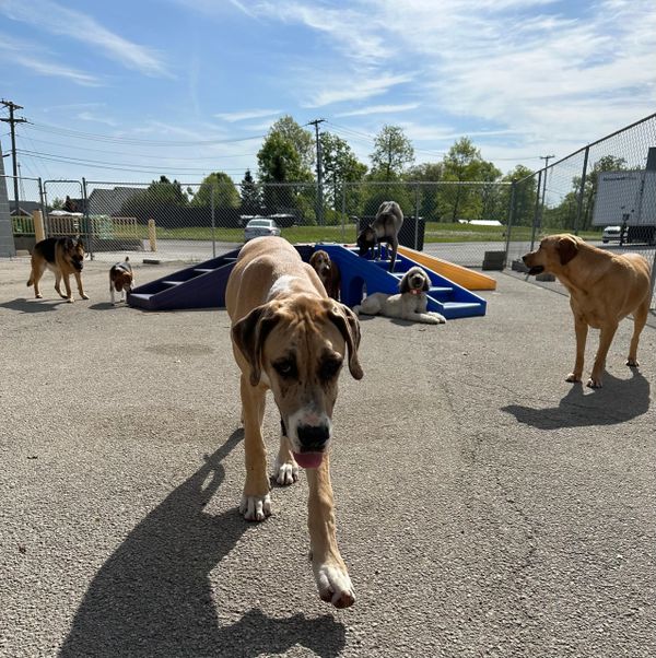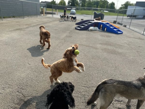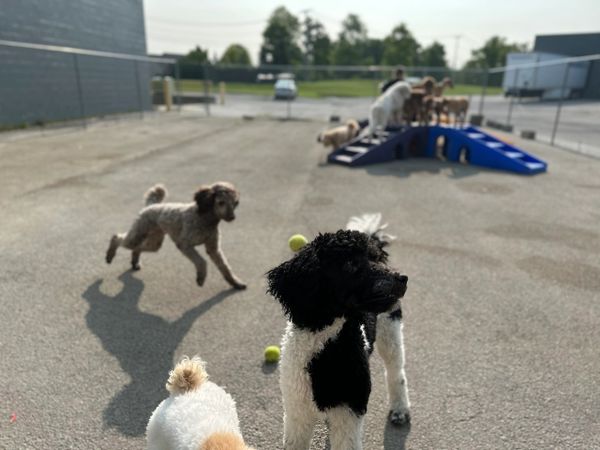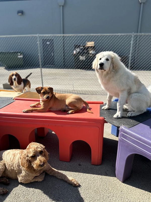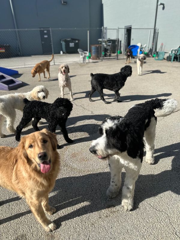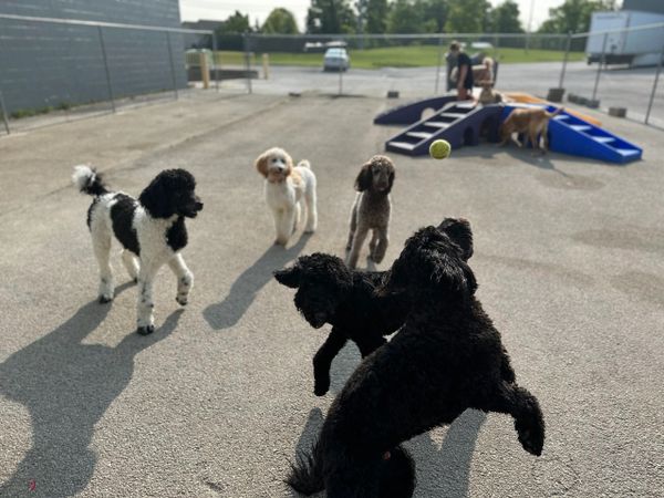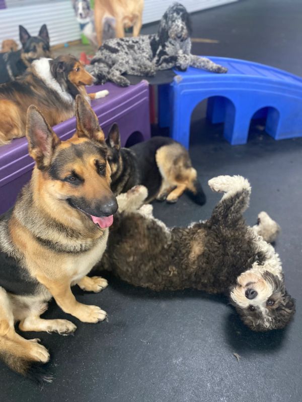 K9to5 Doggy Daycare is a unique, upscale doggy daycare facility, that provides each canine client with exceptional care in a loving, safe, and clean environment. We have multiple play areas for dogs of different sizes, ages, and play styles to enjoy safe and supervised socialization and exercise. Each play area is complete with toys, play equipment, cots for relaxation, and fresh water around the clock. Your dog will spend their day playing with their best furriends and receiving constant love and attention from our trained staff. By the end of the day they will be happy and totally tuckered out!