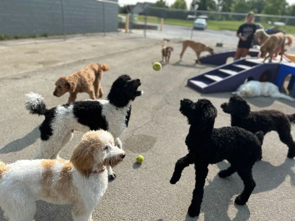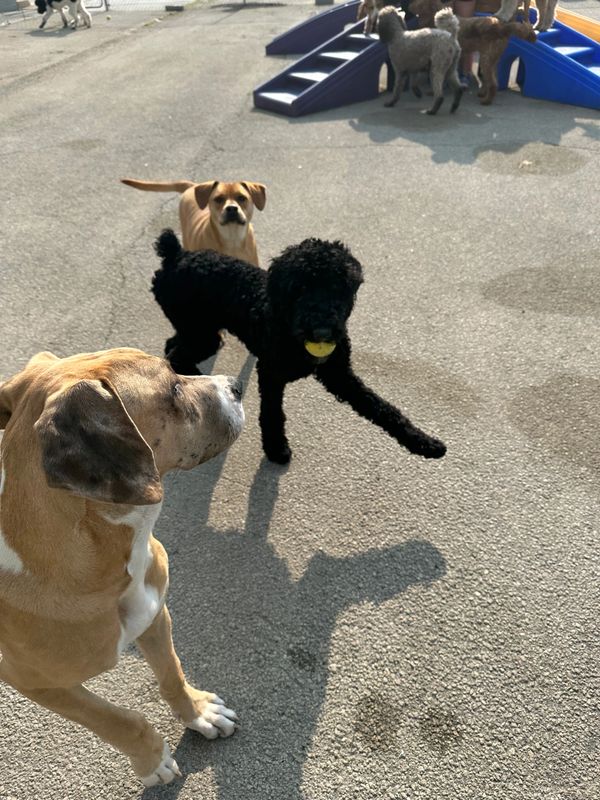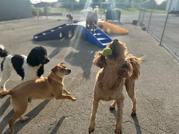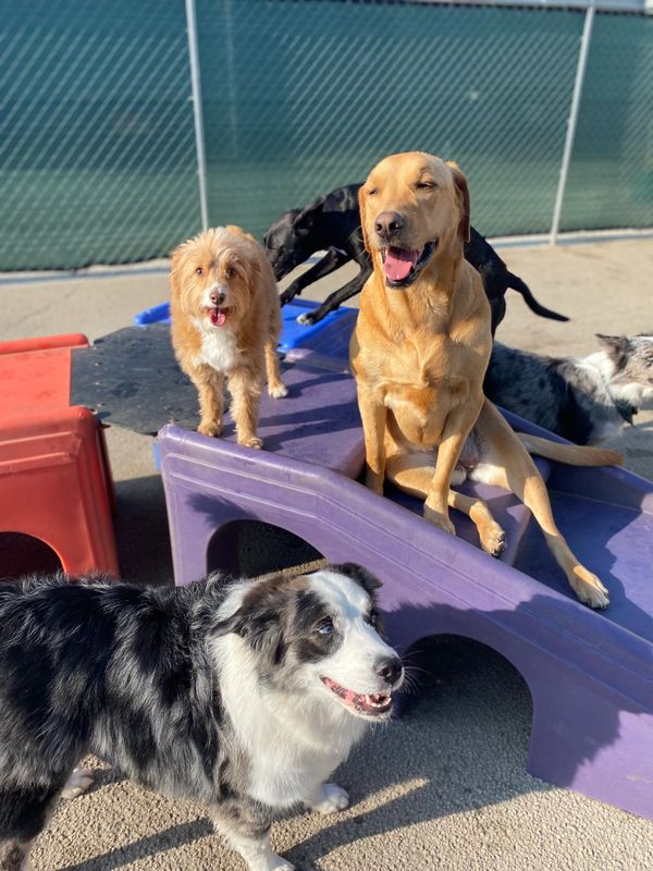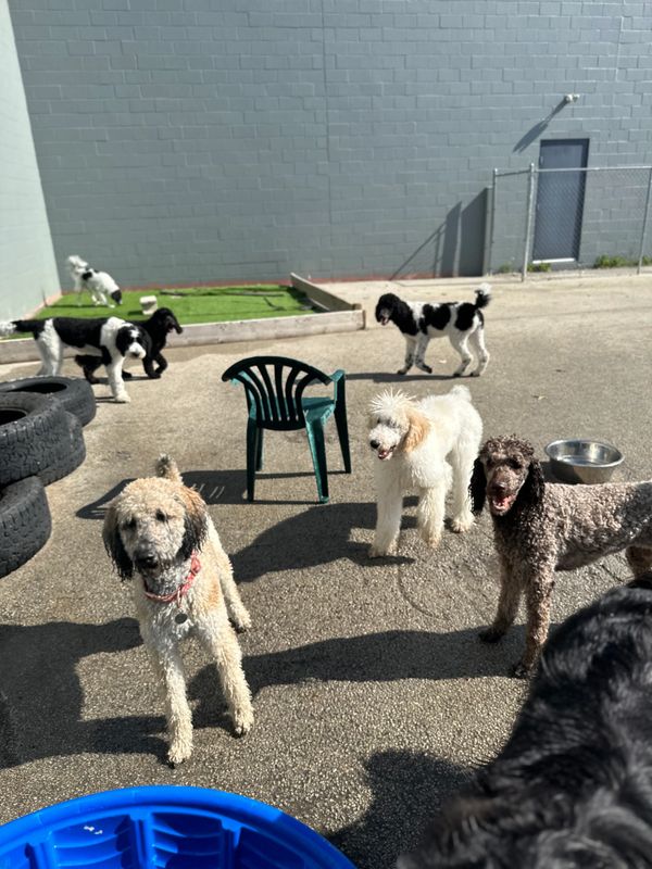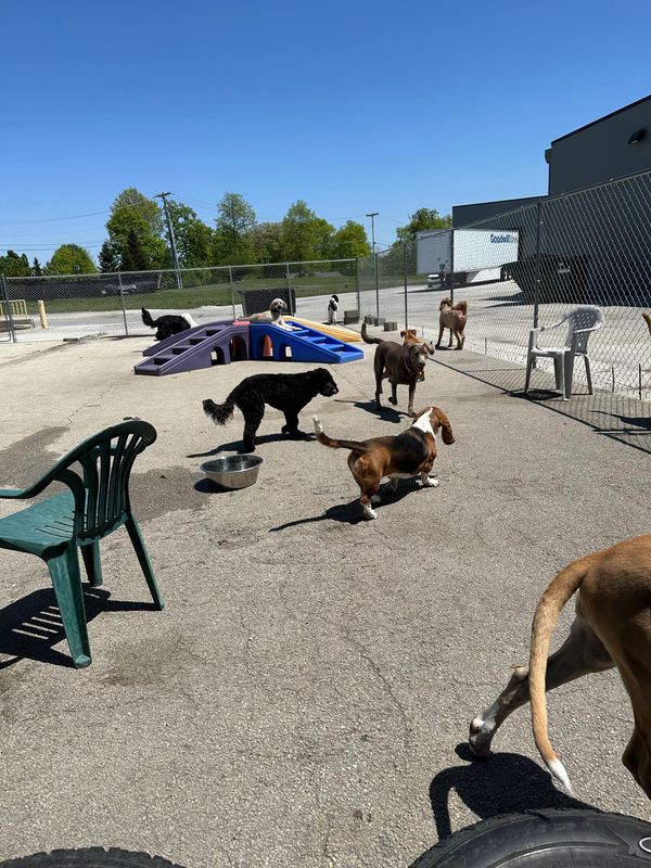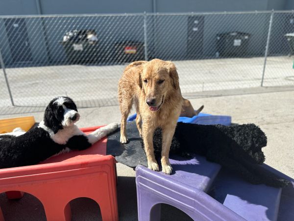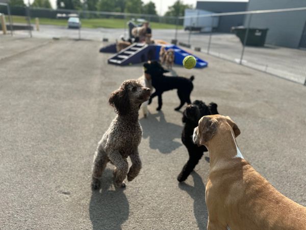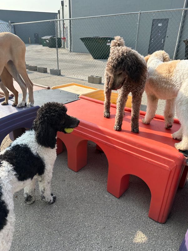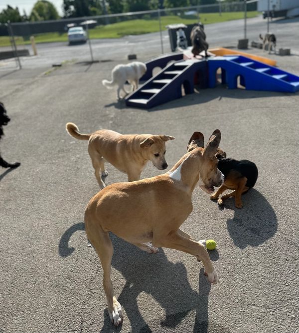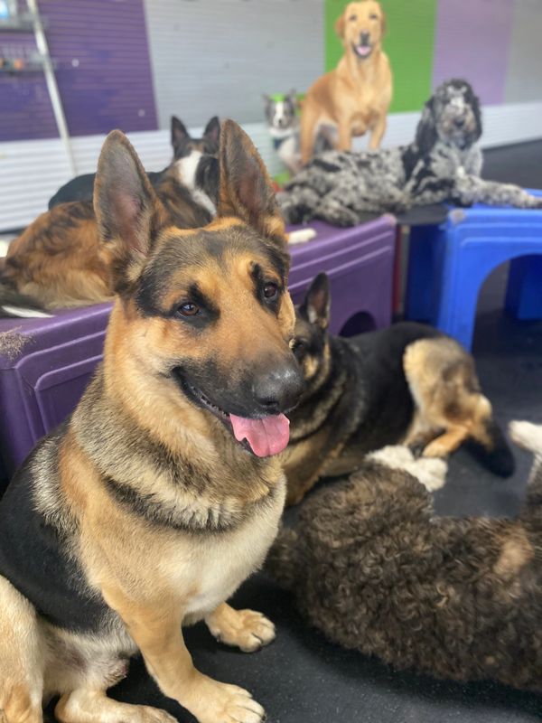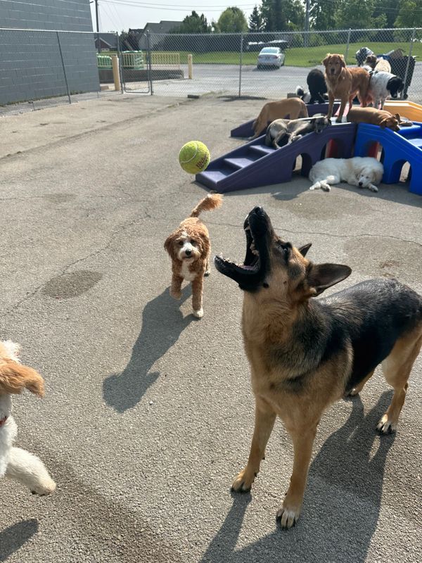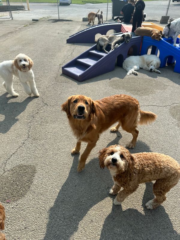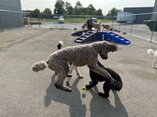 K9to5 Doggy Daycare is a unique, upscale doggy daycare facility, that provides each canine client with exceptional care in a loving, safe, and clean environment. We have multiple play areas for dogs of different sizes, ages, and play styles to enjoy safe and supervised socialization and exercise. Each play area is complete with toys, play equipment, cots for relaxation, and fresh water around the clock. Your dog will spend their day playing with their best furriends and receiving constant love and attention from our trained staff. By the end of the day they will be happy and totally tuckered out!