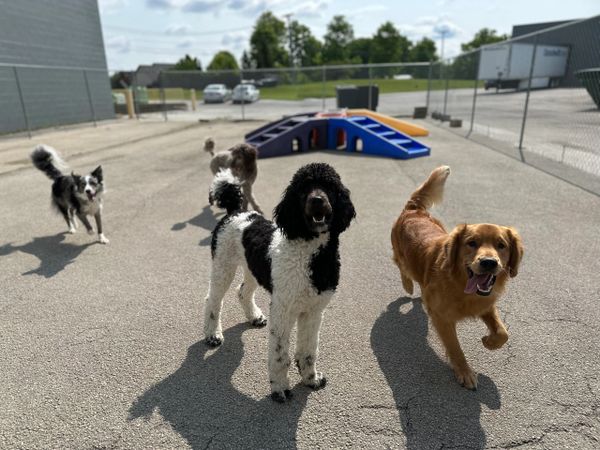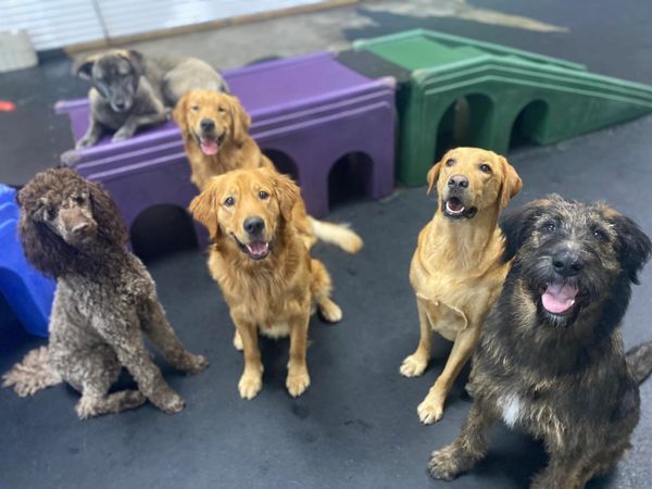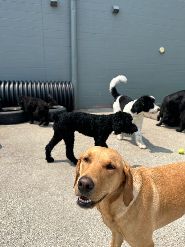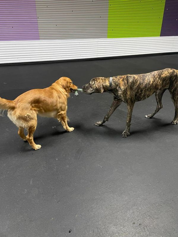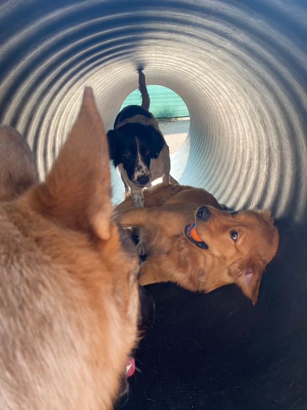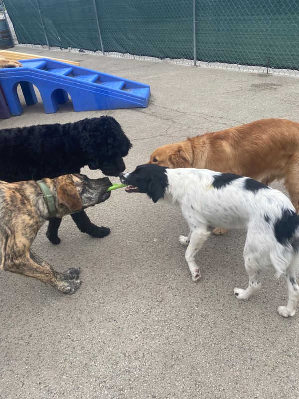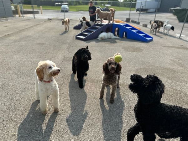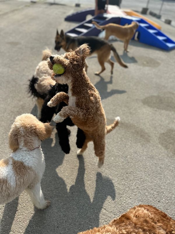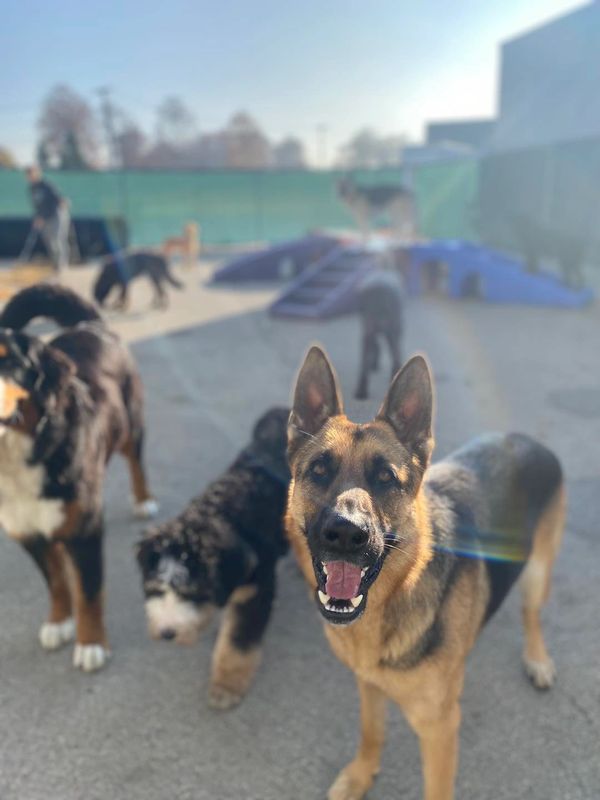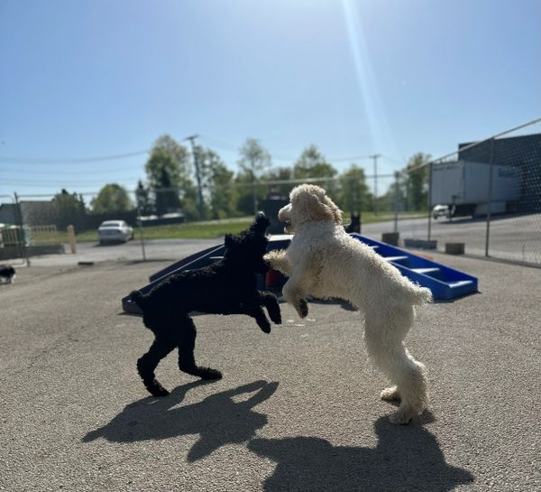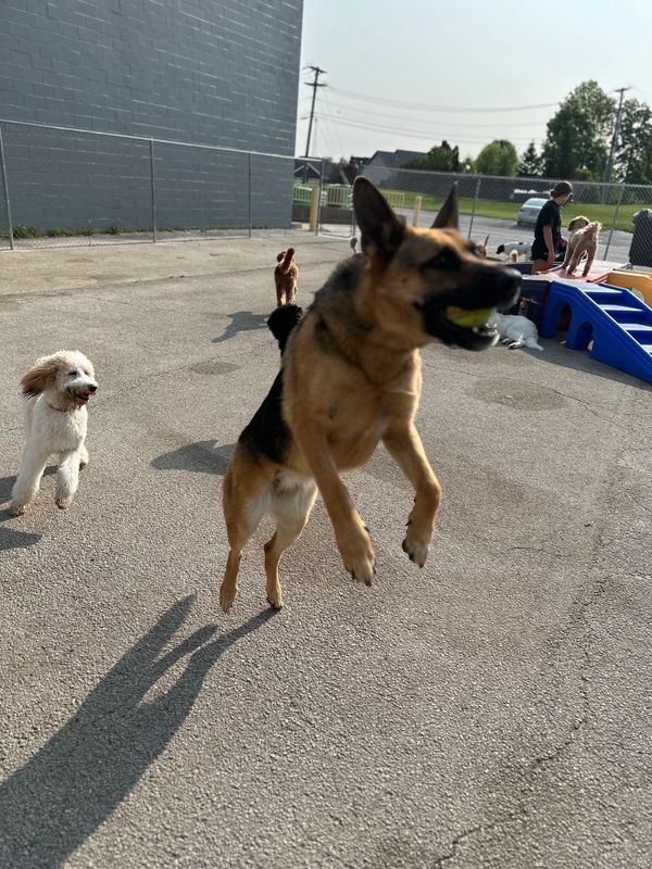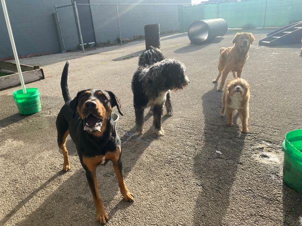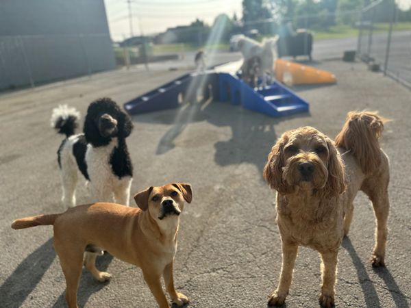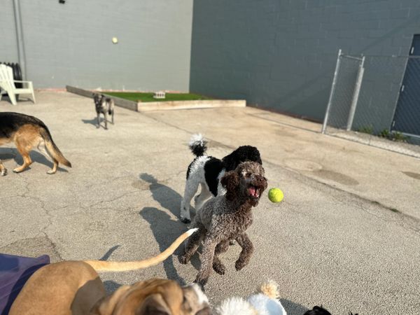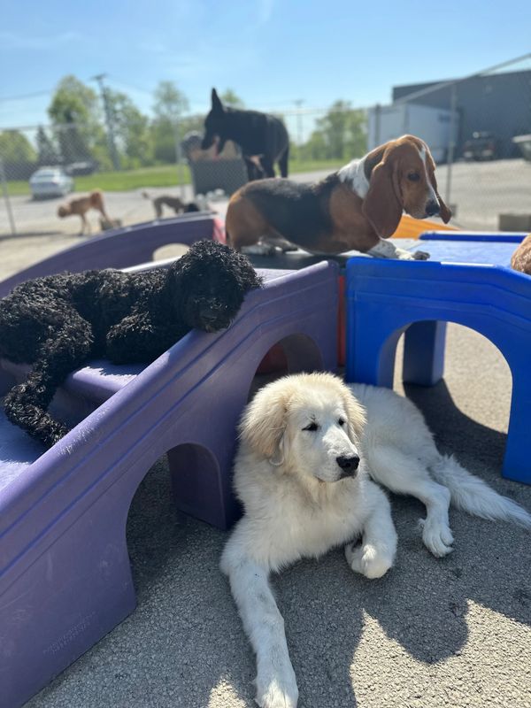 K9to5 Doggy Daycare is a unique, upscale doggy daycare facility, that provides each canine client with exceptional care in a loving, safe, and clean environment. We have multiple play areas for dogs of different sizes, ages, and play styles to enjoy safe and supervised socialization and exercise. Each play area is complete with toys, play equipment, cots for relaxation, and fresh water around the clock. Your dog will spend their day playing with their best furriends and receiving constant love and attention from our trained staff. By the end of the day they will be happy and totally tuckered out!