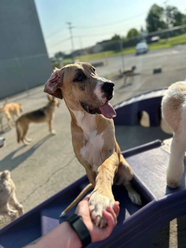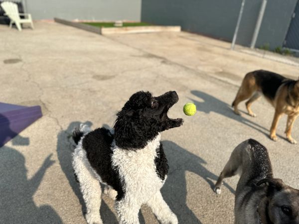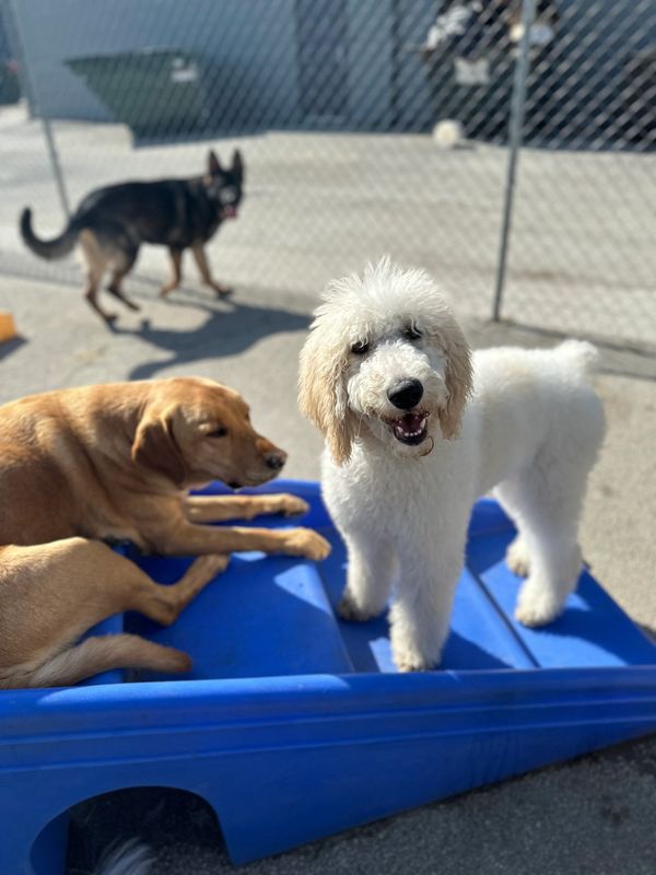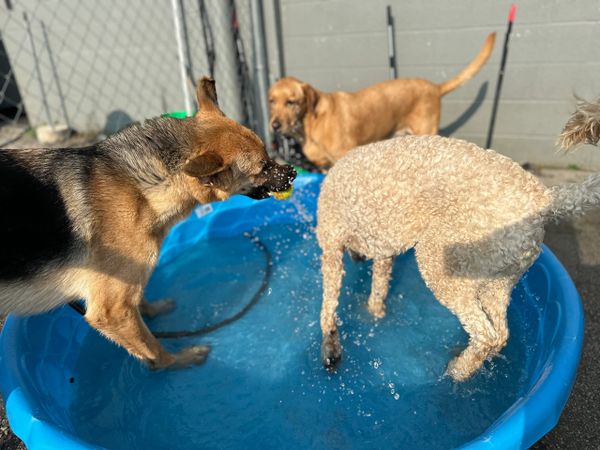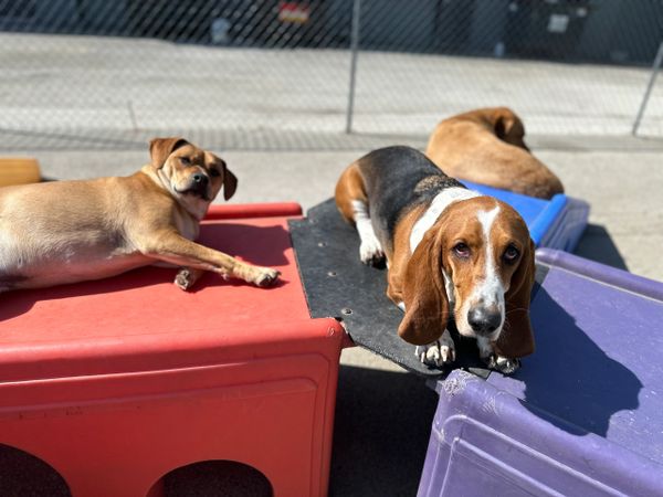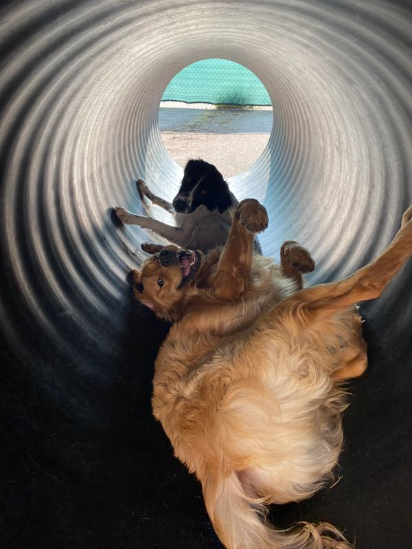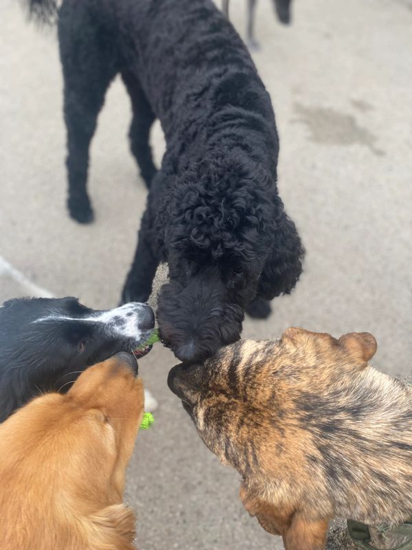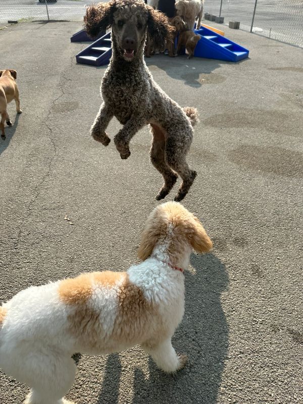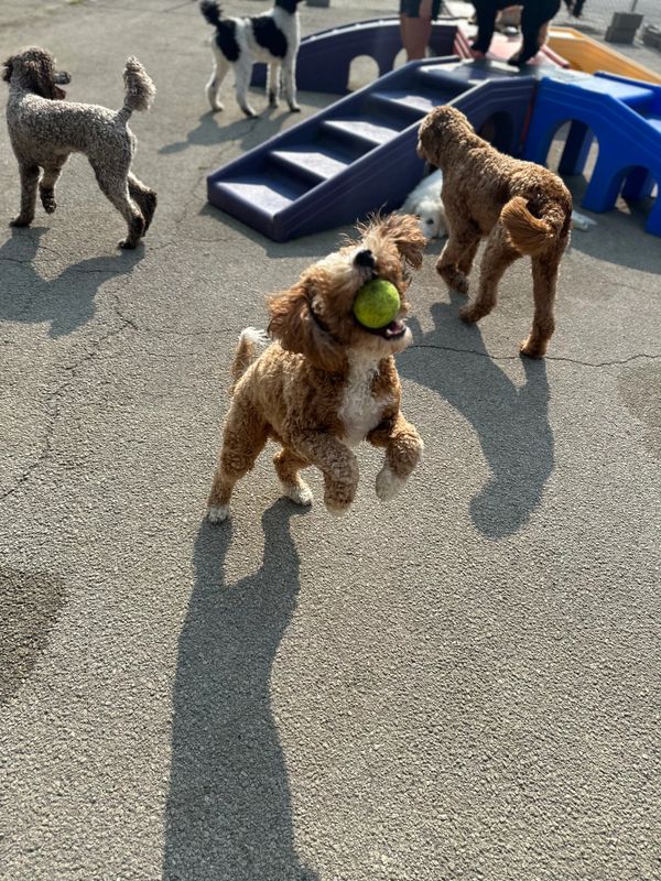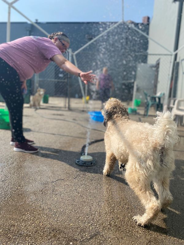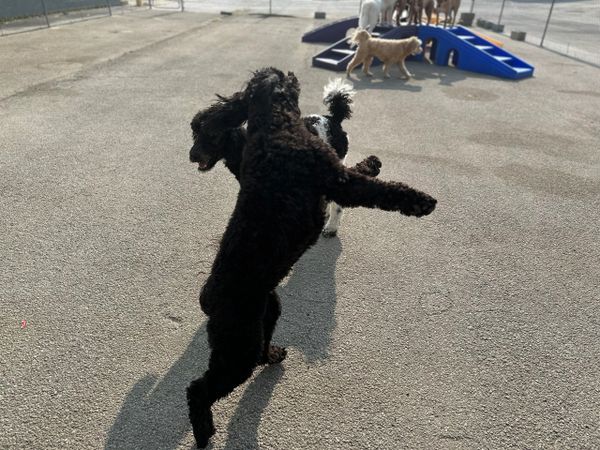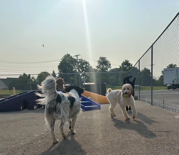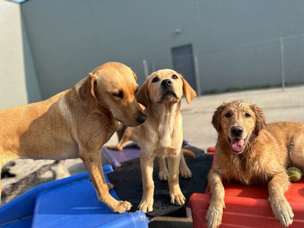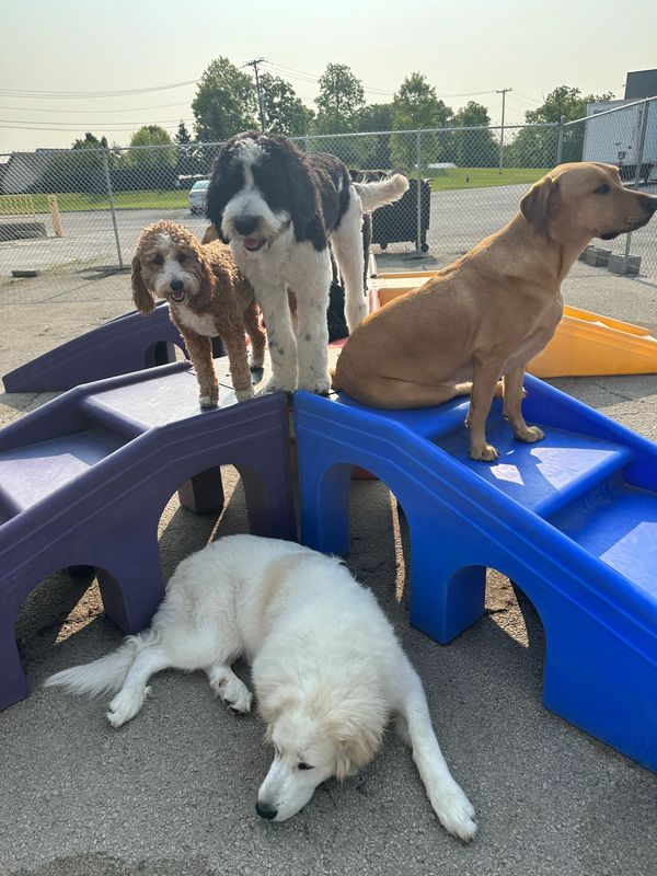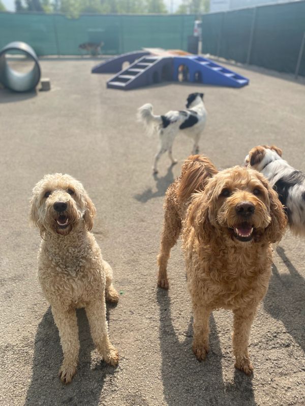 K9to5 Doggy Daycare is a unique, upscale doggy daycare facility, that provides each canine client with exceptional care in a loving, safe, and clean environment. We have multiple play areas for dogs of different sizes, ages, and play styles to enjoy safe and supervised socialization and exercise. Each play area is complete with toys, play equipment, cots for relaxation, and fresh water around the clock. Your dog will spend their day playing with their best furriends and receiving constant love and attention from our trained staff. By the end of the day they will be happy and totally tuckered out!