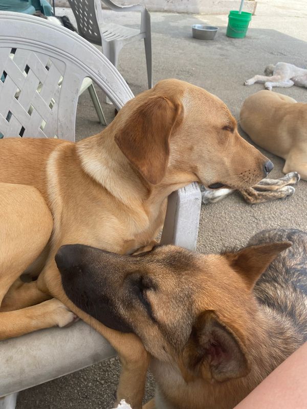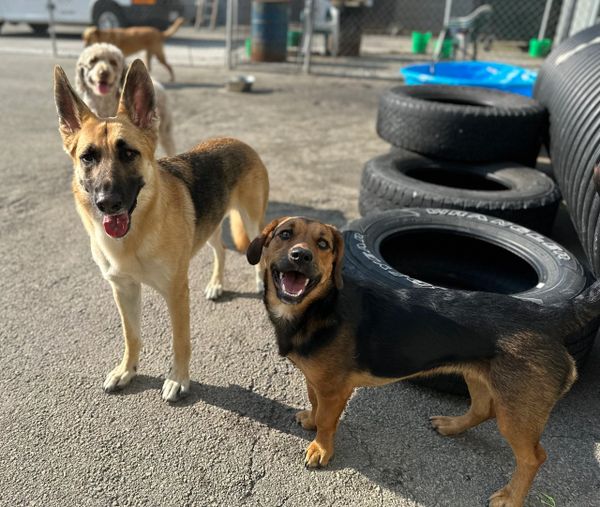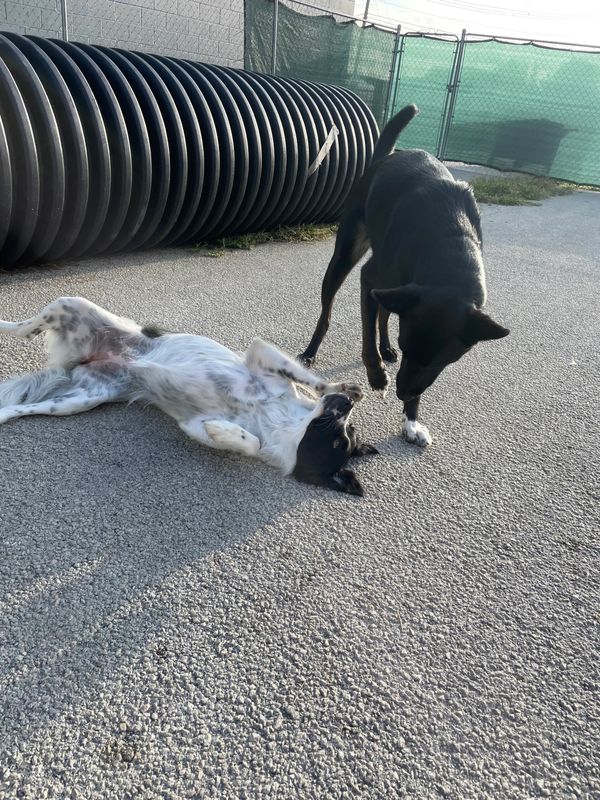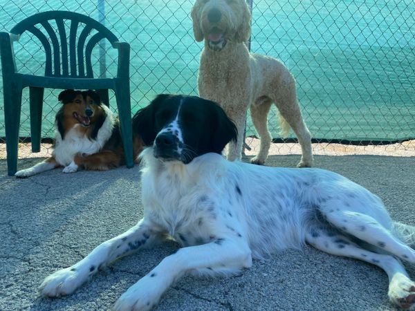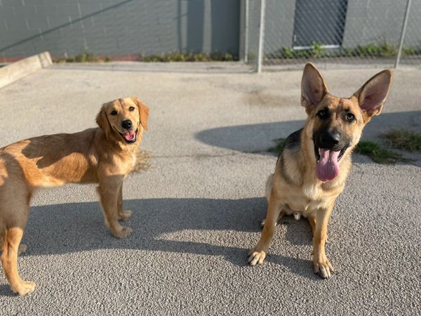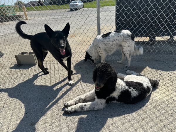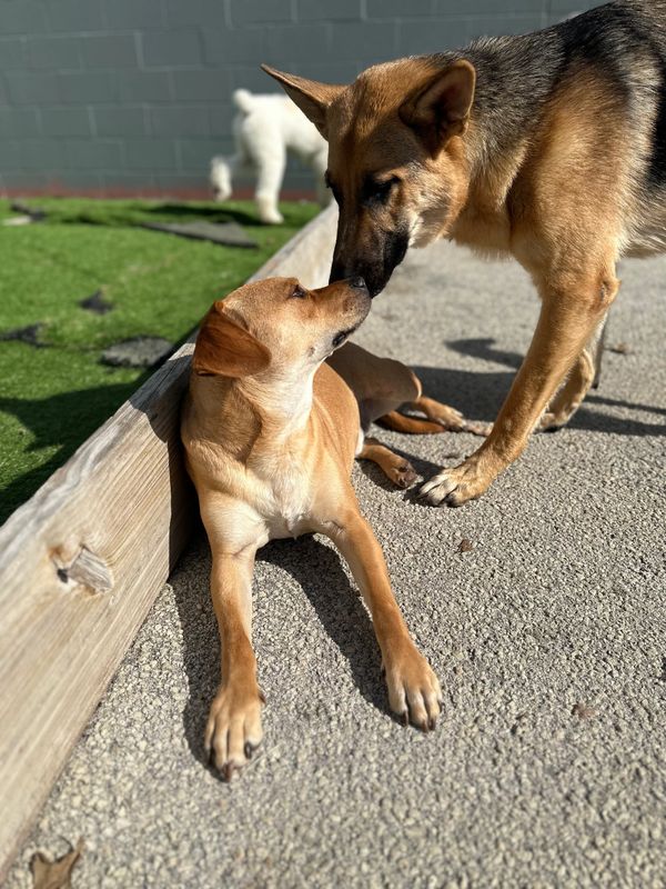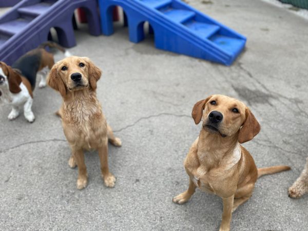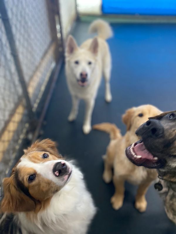 We offer overnights for your loved one to spend time with us while you are away. We know how hard it can be to leave your fur baby, so we try to make it a little less ruff- for you and your pet. We love them like they're our own and we can even send you pictures while you're away! The dogs play and socialize at daycare during the day, eat dinner, watch some TV, and be ready to snooze the night away in our secure facility.