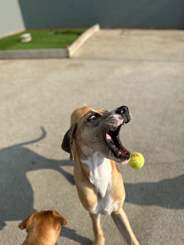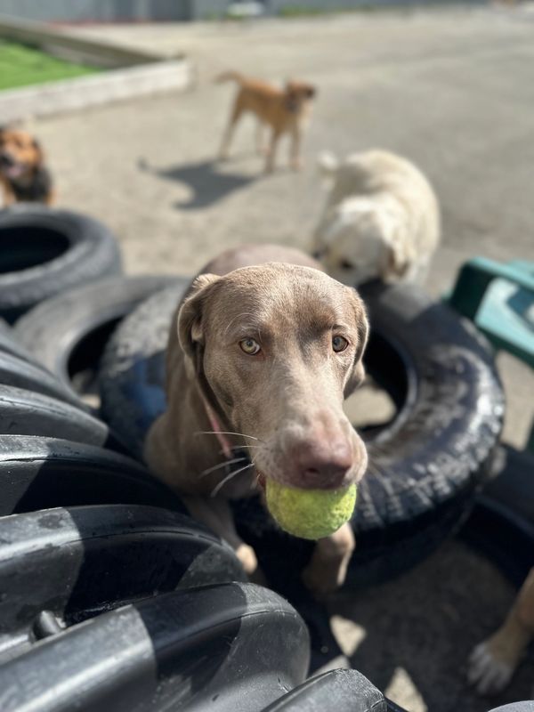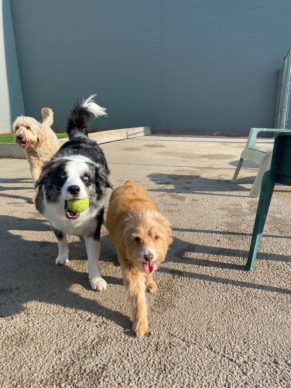 Every day at K9to5 is another day in paradise - for the dogs and the staff! We spend our days playing fetch and tag, cuddling, and getting the best kisses! Our daycare dogs make our world go 'round!